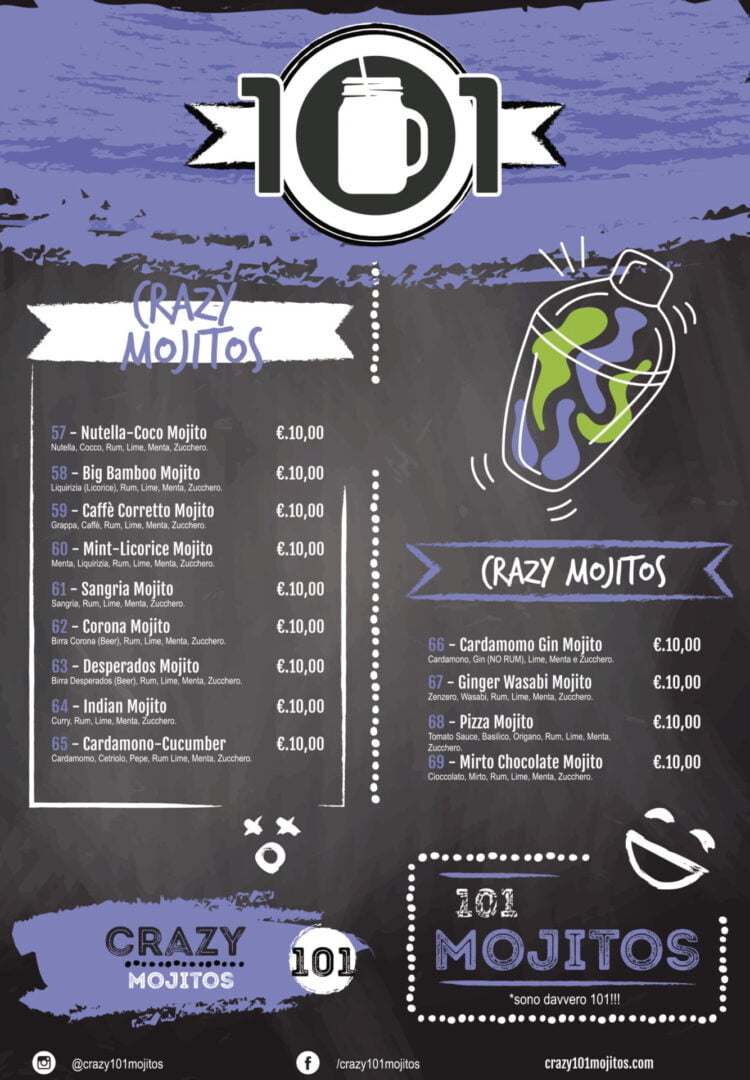 • Personalizzazioni grafiche: ogni menù è un’opera grafica a sé, che rispetta l’identità visiva del locale, con grafiche personalizzate e colori che rispecchiano il tema.